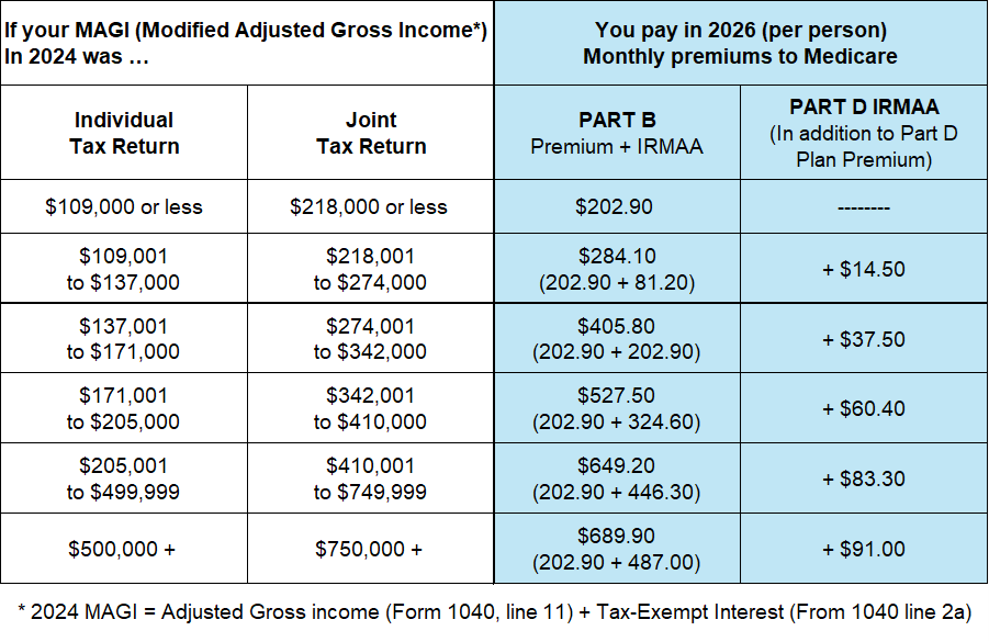 IRMAA (Income-Related Monthly Adjustment Amount) Chart